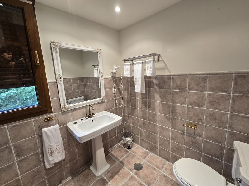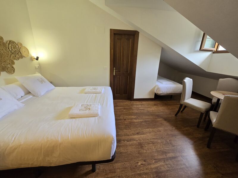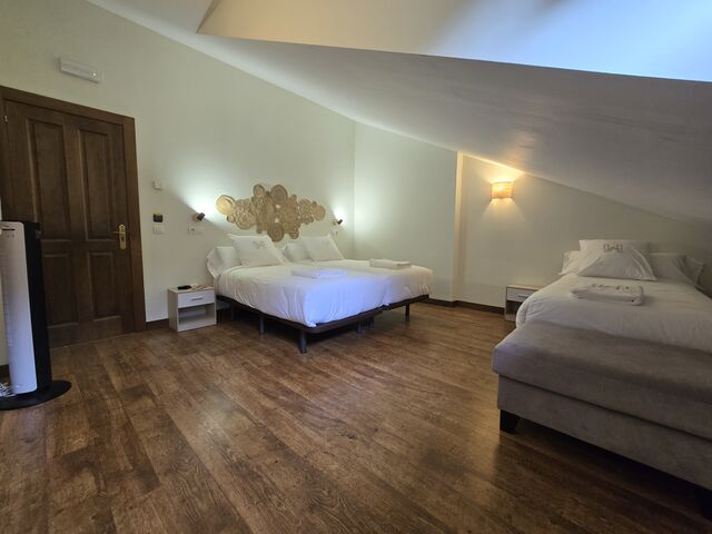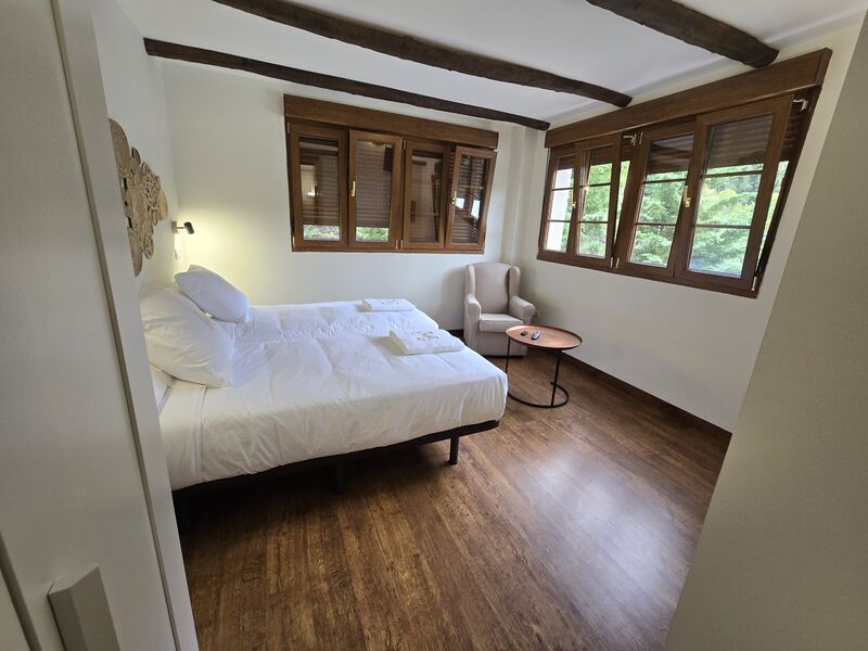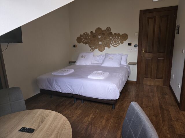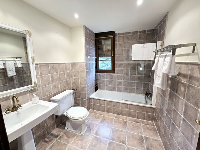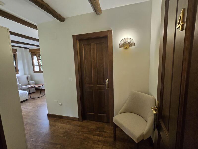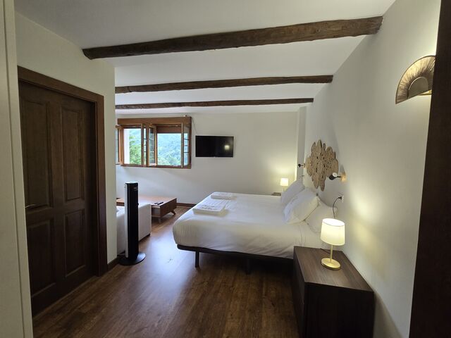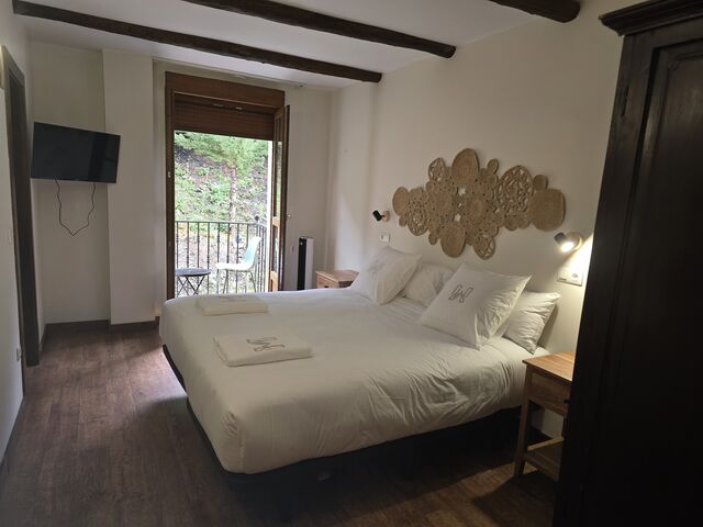 Todas las habitaciones cuentan con tv y calefacción por suelo radiante con regulador de temperatura. Las camas están equipadas con ropa de 450 hilos de algodón egipcio 100% de la casa Carmen Borja. Los colchones son de alta gama de la marca Sonpura , diseñados para hoteles de cinco estrellas. Con ello queremos brindar la máxima comodidad y confort a nuestros clientes. Los baños de cada habitación son amplios, con toallas de algodón 100% de 650 gramos de grosor, gel, champú y acondicionador hipoalergénicos y secador de pelo.