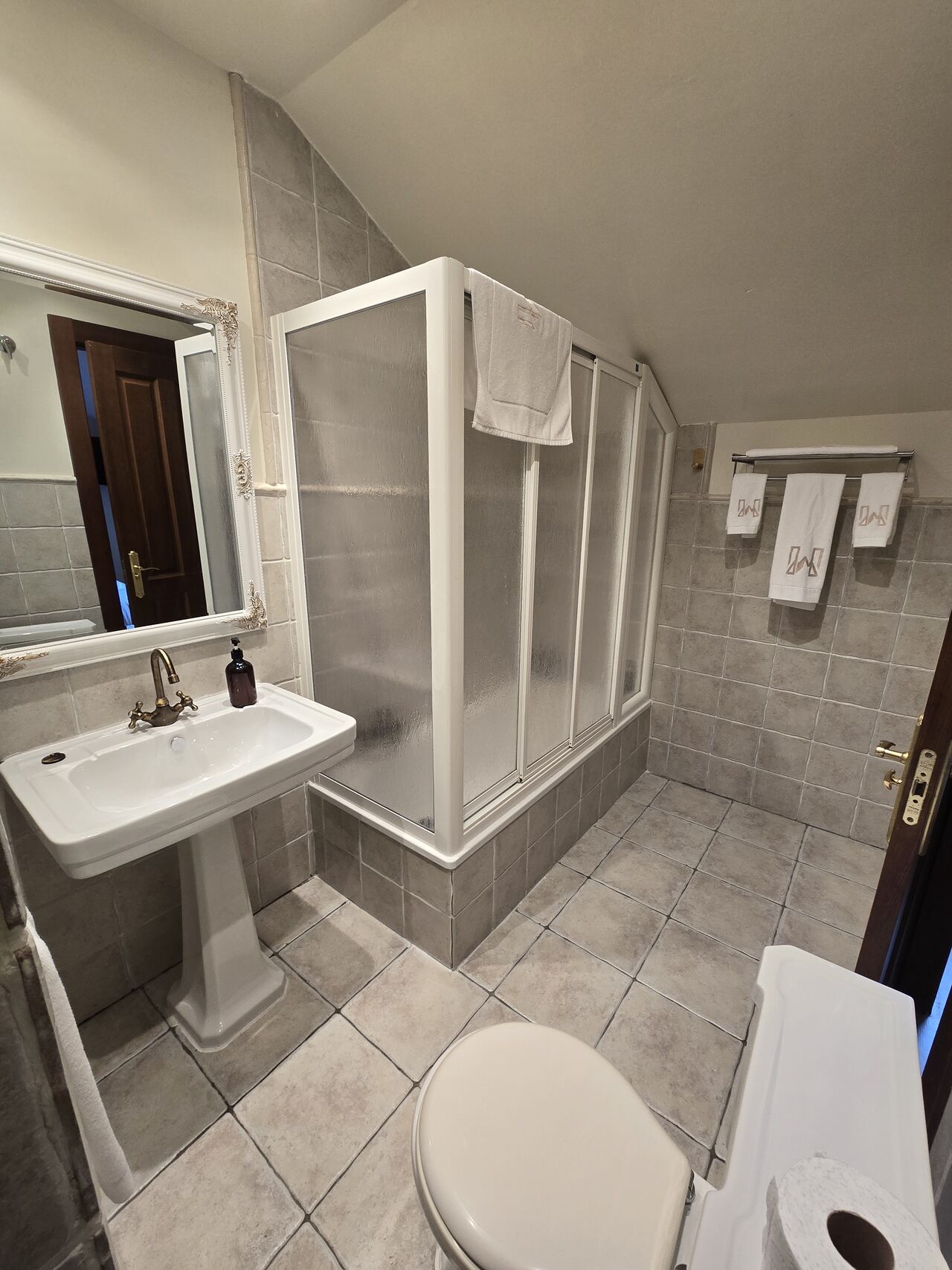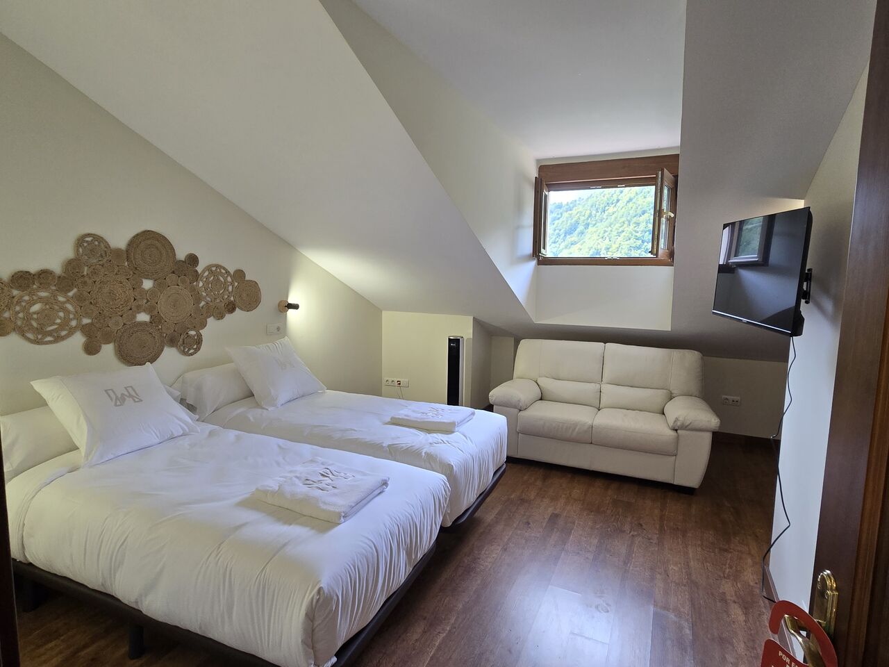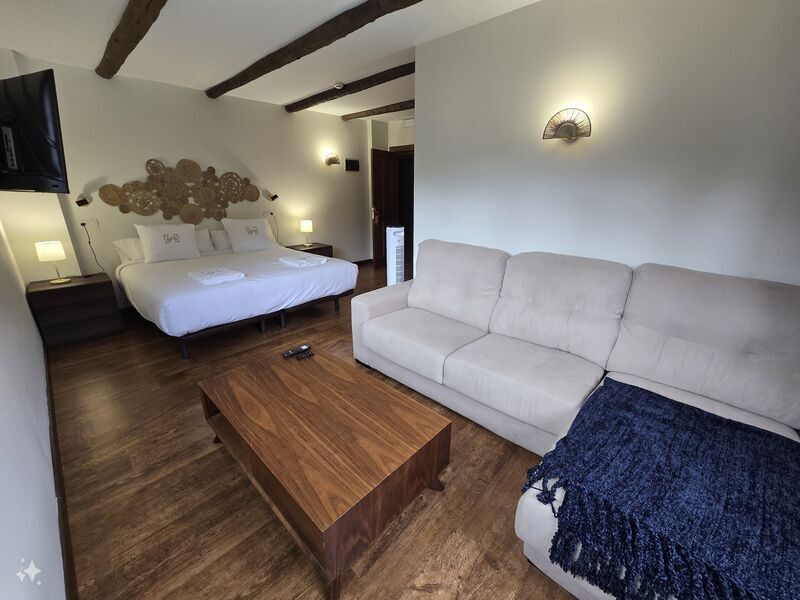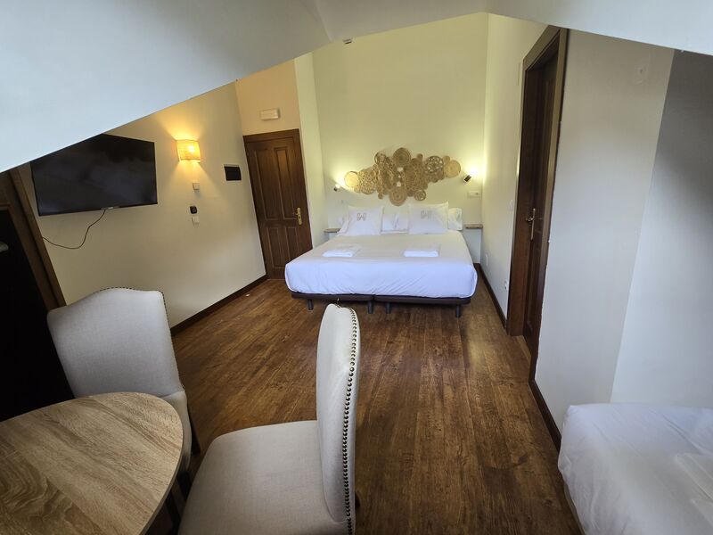 Todas las habitaciones cuentan con tv y calefacción por suelo radiante con regulador de temperatura. Las camas están equipadas con ropa de 450 hilos de algodón egipcio 100% de la casa Carmen Borja. Los colchones son de alta gama de la marca Sonpura , diseñados para hoteles de cinco estrellas. Con ello queremos brindar la máxima comodidad y confort a nuestros clientes. Los baños de cada habitación son amplios, con toallas de algodón 100% de 650 gramos de grosor, gel, champú y acondicionador hipoalergénicos y secador de pelo.